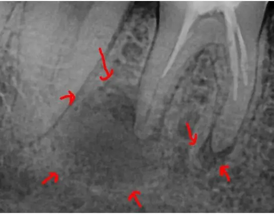 | Figure 4. Six months later, there was nice healing on both roots. |