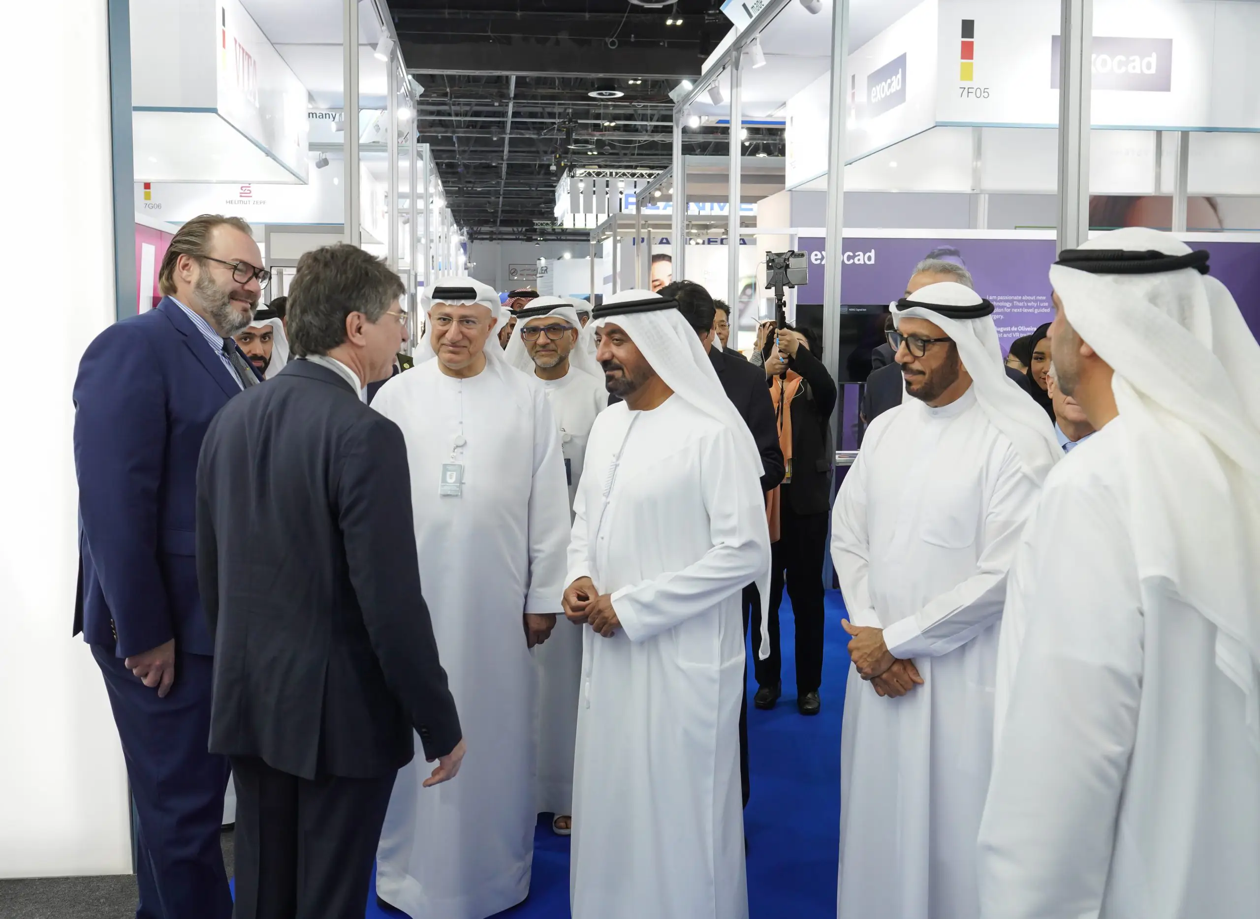 His Highness Sheikh Ahmed bin Saeed and his accompanying delegation toured the exhibition, visiting the stands of numerous international companies and medical health authorities. His Highness spoke with industry professionals from South Korea, Italy, Germany, Brazil, Switzerland, Turkey, China, Spain, France, UAE, and other countries. HH was briefed on their leading solutions and projects that support the dental and oral healthcare sector, which include upgrading diagnostic and treatment services.