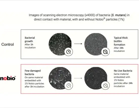 Plus, the filling material retains these insoluble particles following polymerization, producing a long-term effect, Nobio says. Long-term antimicrobial protection and a stable molecular structure are especially important in dental restorations, which are intended to remain in the oral environment for decades, according to the company. More than 200 million restorations are performed in the United States each year, many of them to replace previous restorations that have failed, at an annual cost of more than $5 billion, Nobio says.