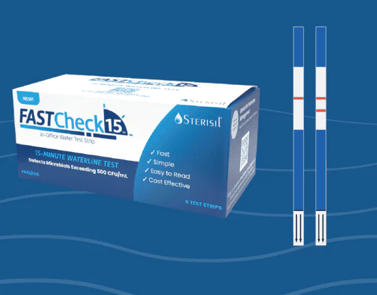 The new FASTCheck15 waterline test is part of the Sterisil® SafeWater Solution: an end-to-end Dental Unit Waterline suite of products and support that was designed with the busy dental office in mind. This solution delivers unmatched disinfection efficacy, ease of use, and affordable value that is changing the game in DUWL management, for efficiency and safety.