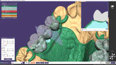 • The QuickSnap* beta feature divides all pieces of the partial denture (framework, two layers of gingiva and teeth) to be easily snapped together for finishing the design, and then optimized for printing and milling