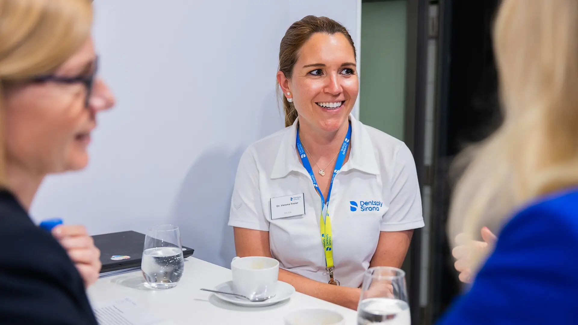 Dr Verena Freier (right) guided visitors through the integrated digital dentistry solutions at the Dentsply Sirona booth during IDS 2025, highlighting innovations that enhanced clinical precision and patient experience.
