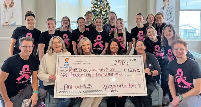 Whit’s End Community Place, a free cancer support center in Wooster and a partner of Wooster Community Hospital, announced that Gregg Orthodontics raised $7,836 during Breast Cancer Awareness Month as part of the Pink Out 2025 campaign.