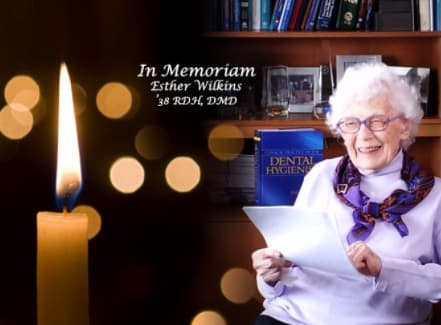 It is with sadness that we share the news that Esther Wilkins, BS, RDH, DMD, dental hygiene’s matriarch, died on Monday, Dec. 12. We had celebrated her hundredth birthday only three days before. Wilkins dedicated her life to advancing oral health care, and her commitment to dental hygiene will not be forgotten.