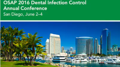 Annapolis, MD:April 13, 2016-Infection prevention and the safe delivery of oral healthcare is the goal of every dental practice, and an upcoming conference is designed to empower attendees to lead the way. The Organization for Safety, Asepsis and Prevention (OSAP) 2016 Annual Conference will be held June 2-5 in San Diego, CA. The content-rich conference will present new infection prevention tools and updates on emerging and re-emerging diseases like Zika and measles, address the top compliance and safety issues, and offer resources, expert guidance, and evidence-based solutions. Attendees who register by April 30 will receive a discount. For more information or to register, go to www.osap.org.