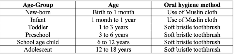 Oral hygiene methods to be adopted according to age of child