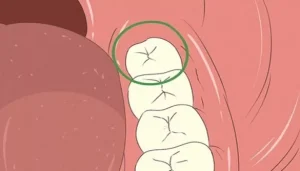 An erupted wisdom tooth is a third molar that has fully emerged through the gum line. It becomes visible in the mouth and aligns with