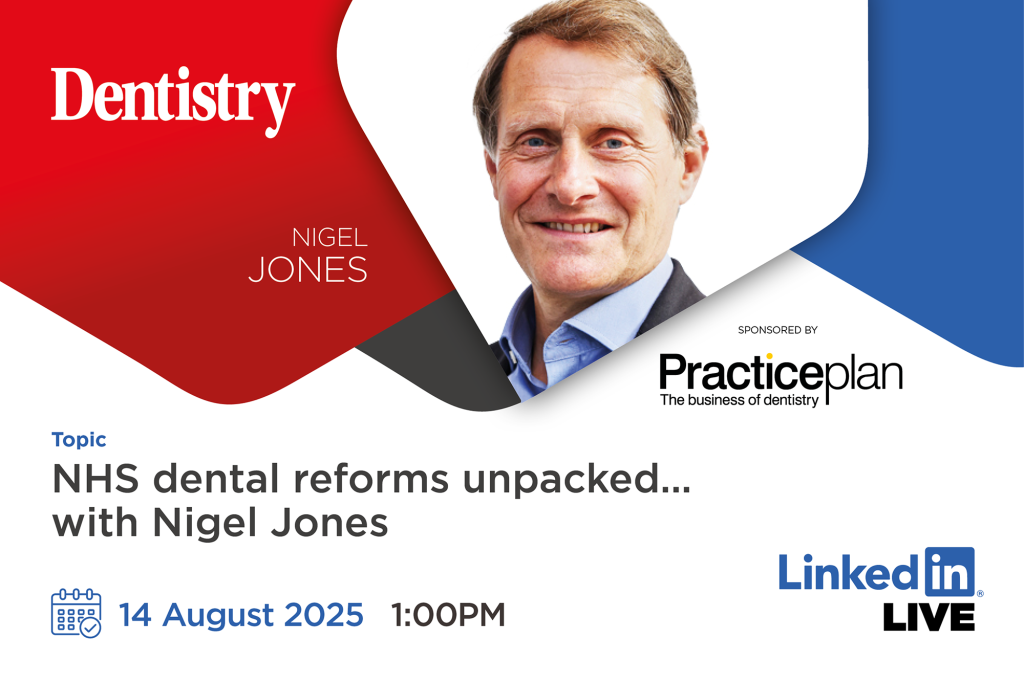 Join Nigel Jones live on 14 August at 1pm as he discusses the latest NHS dental reforms and what this might mean for the future of UK dentistry.