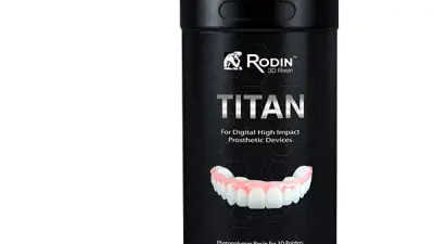 Rodin™ Titan is a ceramic nanohybrid resin engineered for the printing of full arch restorations and provisional hybrid dentures. Rodin™ Titan retains the core composition of Rodin™ Sculpture – a class II ceramic nanohybrid with analogous ceramic filler content, but features a substantial increase in flexibility for enhanced impact strength. This modified flexural modulus has been specifically tailored for printing full arch restorations and provisional hybrid dentures. Dental clinicians can now print long-lasting tooth arches for split file denture designs, full monolithic dentures, and immediate screw-retained dentures