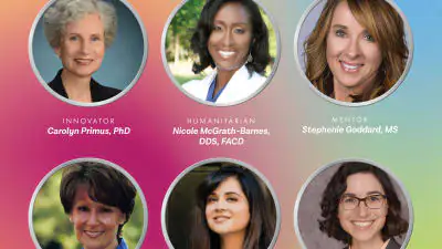 • Carolyn Primus, PhD, recipient of the Innovator award, makes strides in bioceramic materials technology for dentistry as an inventor, researcher, manufacturer, teacher, and humanitarian. She developed more than 100 medical devices in 30-plus years, including those she used to found Avalon Biomed. An inventor on 12 patents, with another pending, Dr. Primus developed bioactive materials that remain the standard of care in endodontics today. A medical device consultant for the past 23 years at Primus Consulting in Sarasota, Florida, she also shares knowledge as an adjunct associate professor at Dental College of Georgia and Texas A&M College of Dentistry. She contributes reviews for journals, lectures at schools on bioactive dental materials, and has authored 40 scientific articles, and chapters in textbooks. Recognitions include a University of Illinois engineering alumni award, and the Dr. Edward B. Shils Award for innovation and development of products for fixed prosthodontics, orthodontics and endodontics. She chairs the endodontic materials committees for the American Dental Association and International Organization for Standardization (ISO). Most recently, Dr. Primus was recognized with the ADA 2019 Volunteer of the Year Award.