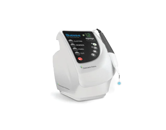 The Bluewave Soft Tissue Diode Laser is a versatile and intuitive instrument, ready for many restorative or periodontal indications. It features up to 5 W of power and 3 preprogrammed settings (debride, perio, and cut) and one custom option. Its unique blue guiding light produces higher contrast on oral tissues and blood than the traditional red beam for increased surgical accuracy and efficiency. For more information, call (800) 265-3444 or visit clinicianschoice.com.
