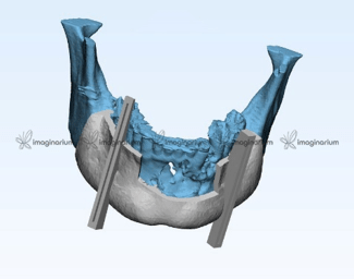 VIRTUAL IMAGE OF RESECTED PIECES GAUGING THE HEIGHT, WIDTH AND PLACEMENT OF THE IMPLANTS