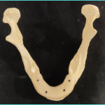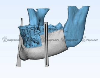 Cases which include the resection of the anterior section of the mandible are more difficult to rehabilitate as it entails reconstruction of the anatomical curvature. This can be achieved via virtual planning.