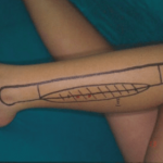 Simultaneously the fibula is analysed for the area to be resected depending on the anatomical considerations. Those include using the middle portion of the bone, not including the distal end of the bone to maintain its vascularity.