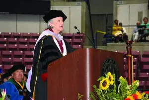 Impart: Theresa Gonzales, D.M.D., delivers a speech as the 2023 Medical University of South Carolina commencement speaker. Retired U.S. Army Col. Theresa S. Gonzales, D.M.D.,