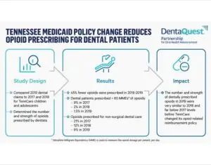Far fewer opioid prescriptions were written for TennCare dental patients in 2019 than in 2017, according to the DentaQuest Partnership for Oral Health Advancement, indicating