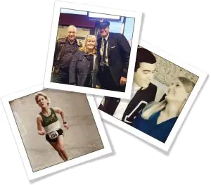 Through the years: Dr. Edgar runs a marathon; Dr. Edgar stands with her husband, Bryan Edgar, D.D.S., and son, David; Dr. Edgar and her husband