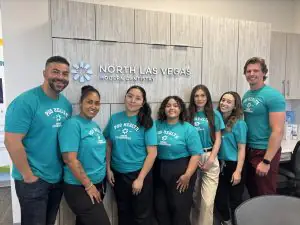 Dental student Brandon Wright (far right) poses with Joseph Brown, D.M.D. (far left) and clinic staff while completing his rotation at North Las Vegas Modern