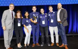 SmileCon Chair Melanie Love, D.D.S., the University of Puerto Rico School of Dental Medicine and Gary Pickard celebrate the Dental Olympics. Orlando, Fla. — Jesse