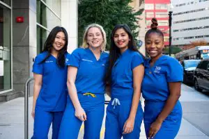 Debora Yoon, Brianna Sammon, Vidhi Desai and Zana Hunt make up Tufts’ D24 Class Executive Leadership Board. Alonso Nichols/Tufts University Dental schools are more diverse than