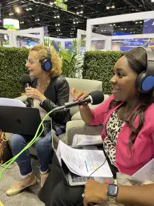 Together: Effie Ioannidou, D.D.S., left, and ArNelle Wright, D.M.D., tape an episode of the Dental Sound Bites podcast at SmileCon 2023 in Orlando, Florida. Photo