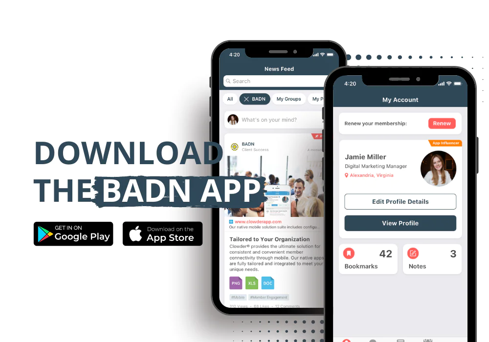 The BADN app is now available for download on both the Apple Store and Google Play. Embrace the future of networking and get involved with your Association like never before: