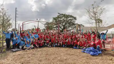 Kids at Babcock Park in Hialeah, Florida are celebrating as the city debuts a kid-designed, community-built playground. The months-long collaboration between The City of Hialeah, Smile Generation, and KABOOM! culminated this week as more than 200 volunteers built the new playspace that will spark joy and foster a sense of belonging for over 1,000 kids each year in Hialeah.