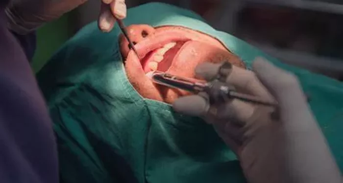 Incision: The gums are incised to access the tooth roots and underlying bone.