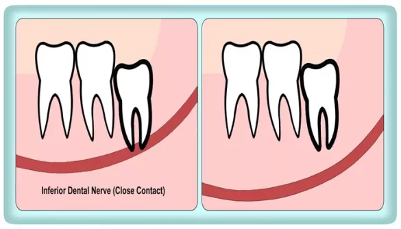 Horizontal impaction: The tooth grows sideways, often pushing into the adjacent tooth.